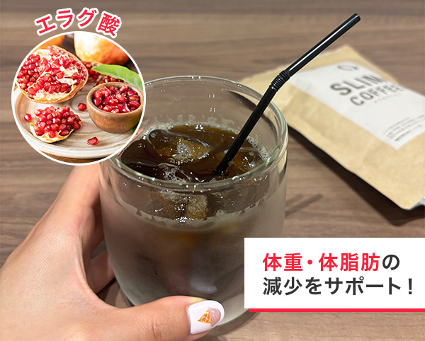 油を吸着する働きがある【炭】が入っているのも嬉しいポイント◎ この【エラグ酸】×【炭】のW配合はSLIM COFFEEが日本初にして日本唯一だそうです!※自社調べ